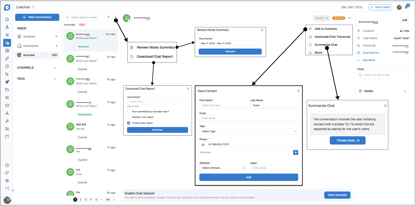 - Archive with Auto-Tag: Archived chats automatically receive a “Not Responded” tag when lapsed.
