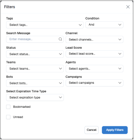 - Unread: Surface only chats with unread user messages for prompt follow-up.