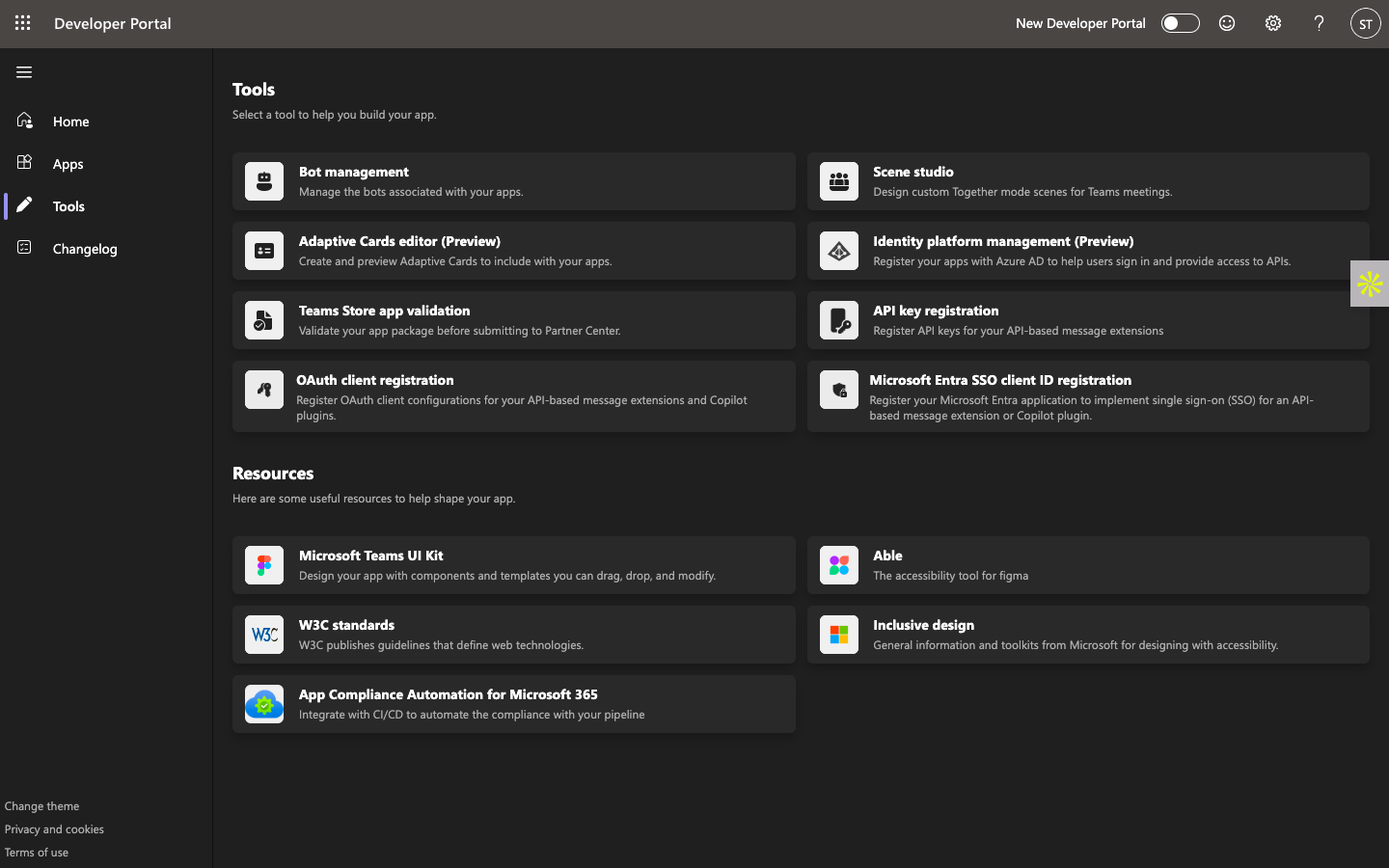 - You’ll be redirected to the Teams Developer Portal Dashboard