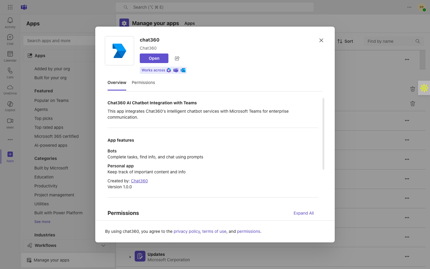 Configure Chat360 bot for Microsoft Teams